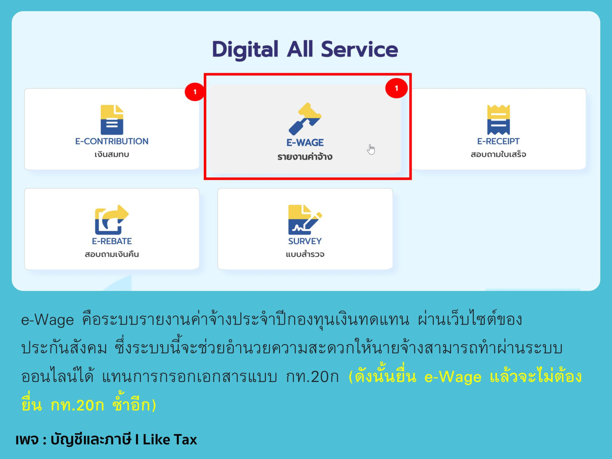 สำหรับโพสนี้จะมาสอนการจ่ายเงินสมทบและยื่นรายงานค่าจ้างผ่านระบบ e-Wage ของประกันสังคม ซึ่งระบบนี้จะช่วยอำนวยความสะดวกให้นายจ้างสามารถทำผ่านระบบออนไลน์ได้ แทนการกรอกเอกสารแบบ กท.20ก ดังนั้นยื่น e-Wage แล้วจะไม่ต้องยื่น กท.20ก ซ้ำอีก และระบบ e-Wage มีขั้นตอนที่ง่ายและสะดวกมากๆ ไปลองเล่นกันได้เลยครับ