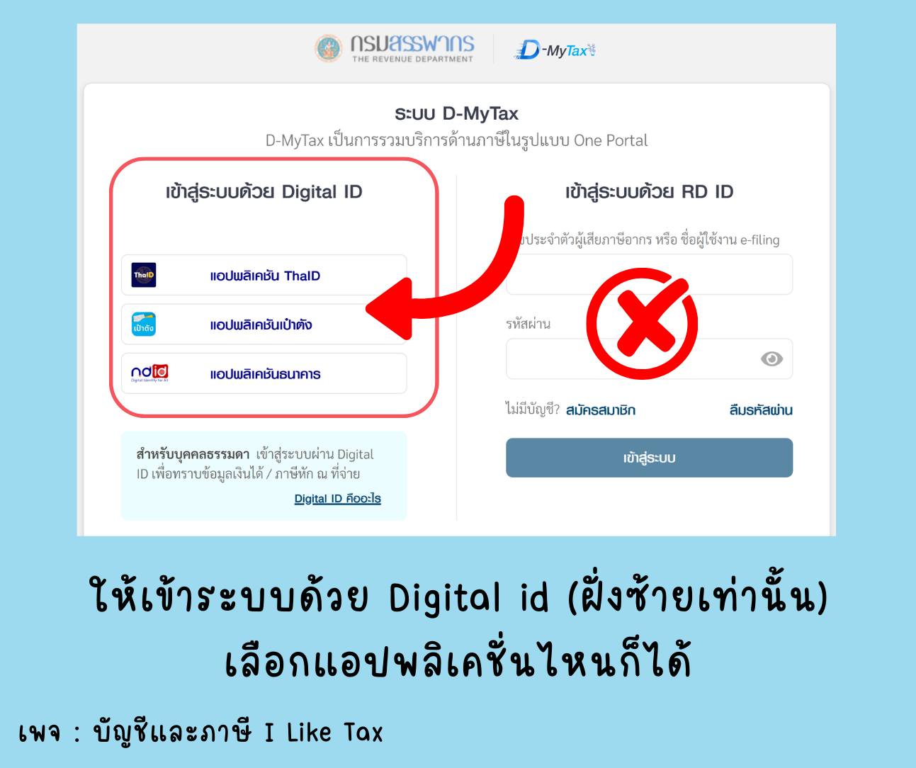 กรมสรรพากรได้เปิดเผยข้อมูลรายได้ และค่าลดหย่อนของบุคคลธรรมดาเอาไว้ในระบบ D-My Tax ของกรมสรรพากร ซึ่งในการเข้าไปดูจะต้องทำการ Log in ด้วยระบบ Digital id เท่านั้น ท่านในดที่ Log in ด้วย username & Password ระบบจะไม่แสดงข้อมูลรายได้.้เข้าไปเช็คข้อมูลกันได้เลยที่ >> https://efiling.rd.go.th/rd-efiling-web/authen/ONE.