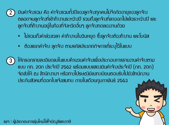 2️⃣ เอกสารรายงานค่าจ้างที่จ่ายจริงทั้งหมดของปีที่ผ่าน (กท.20 ก) --> กิจการจะต้องกรอกข้อมูลและส่งกลับภายในเดือนกุมภาพันธ์ของปีถัดไป (ตอนกรอกต้องกระทบยอดให้ตรงกับ ภ.ง.ด. 1ก ด้วย)