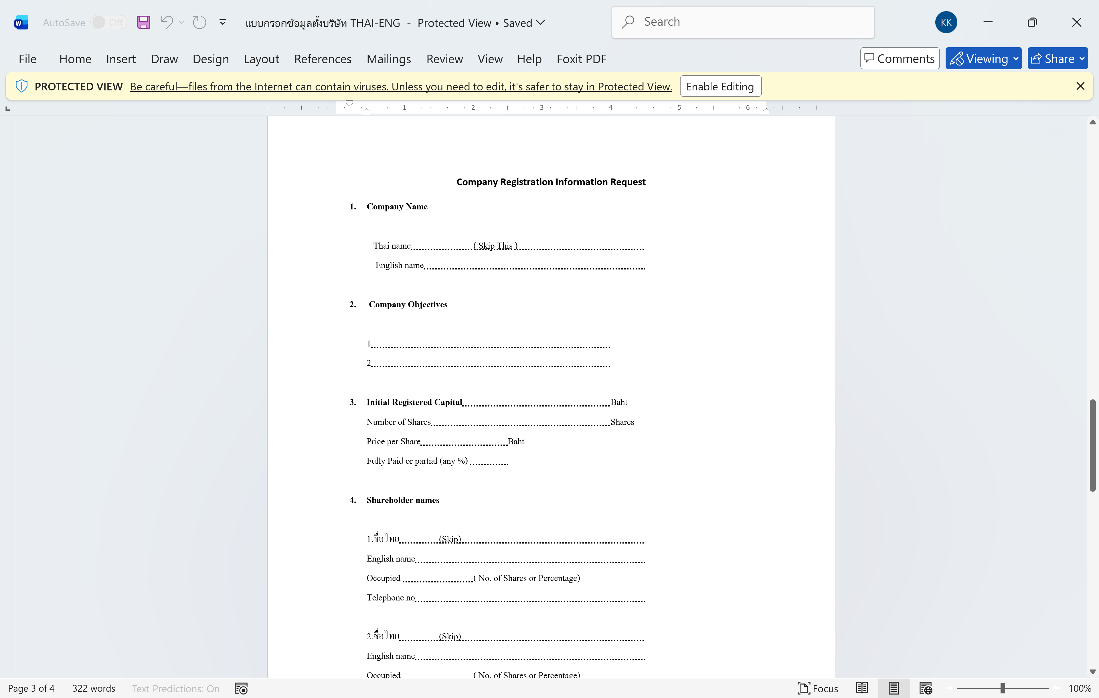 | ใบเสนอราคาค่าบริการจดทะเบียนจัดตั้งบริษัท | 20.4 KB | 209 | |