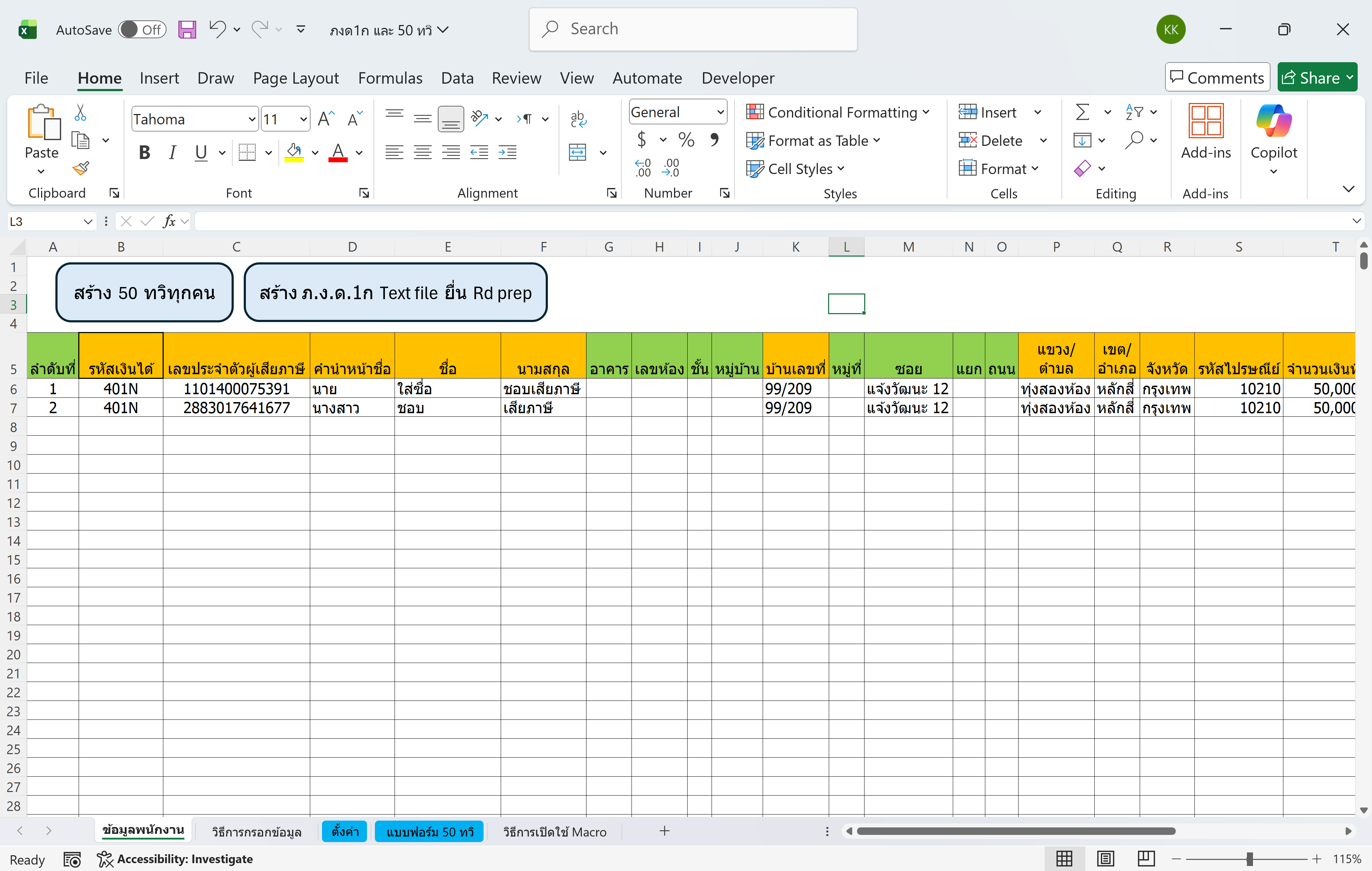 | Excel macro ช่วยทำ 50 ทวิพนักงาน และแปลง text file ยื่น ภ.ง.ด.1ก | 748.8 KB | 35 | |