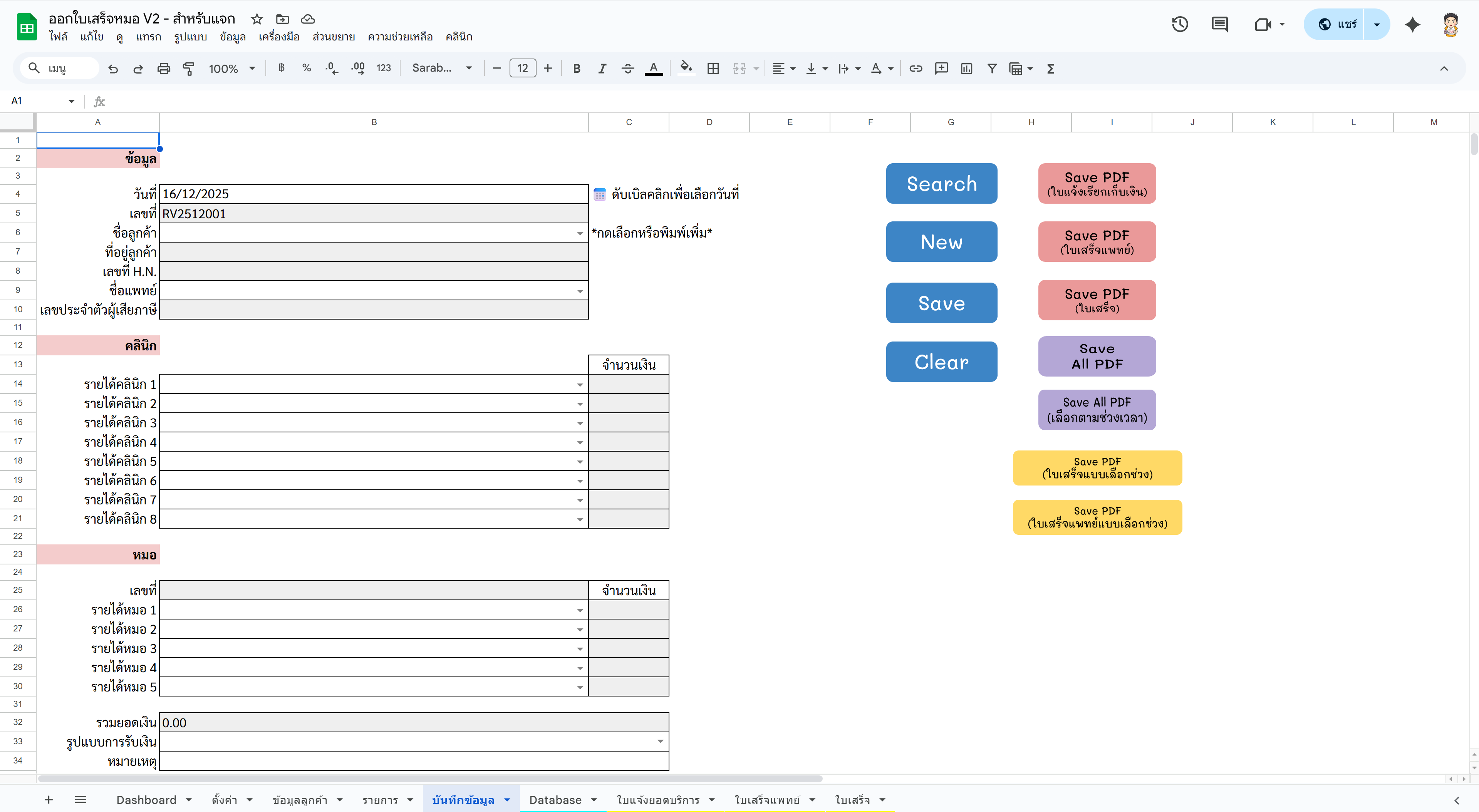 | Google Sheet โปรแกรมเปิดบิลคลีนิค (แบ่งรายได้คุณหมอกับคลีนิค) | 13.8 KB | 0 | |