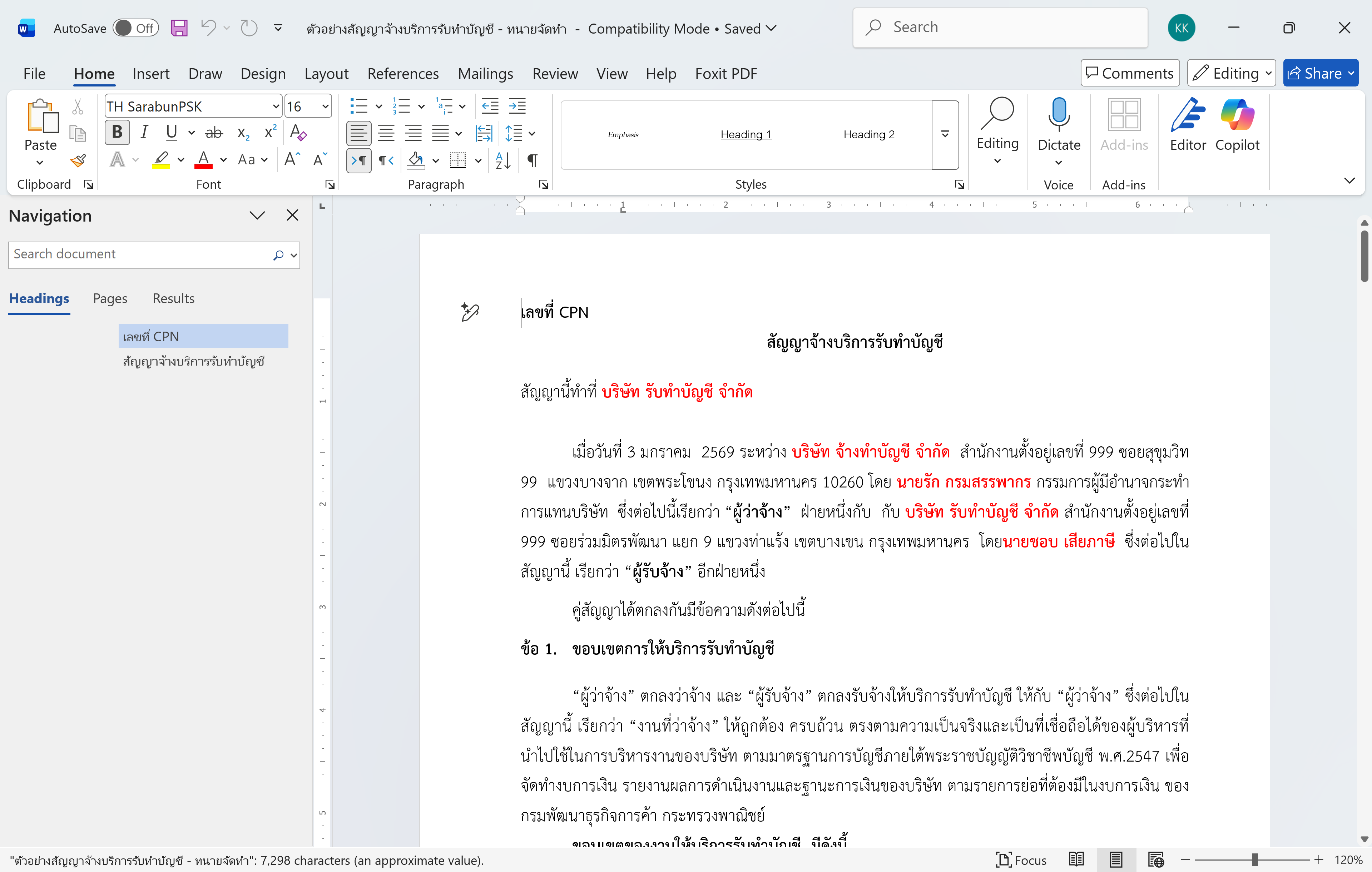 | สัญญาจ้างบริการทำบัญชี (จัดทำโดนทนาย) | 88 KB | 25 | |
